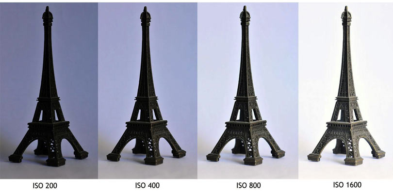 صورة توضح التأثيرات الناتجة عن زيادة حساسية حساس الضوء ISO