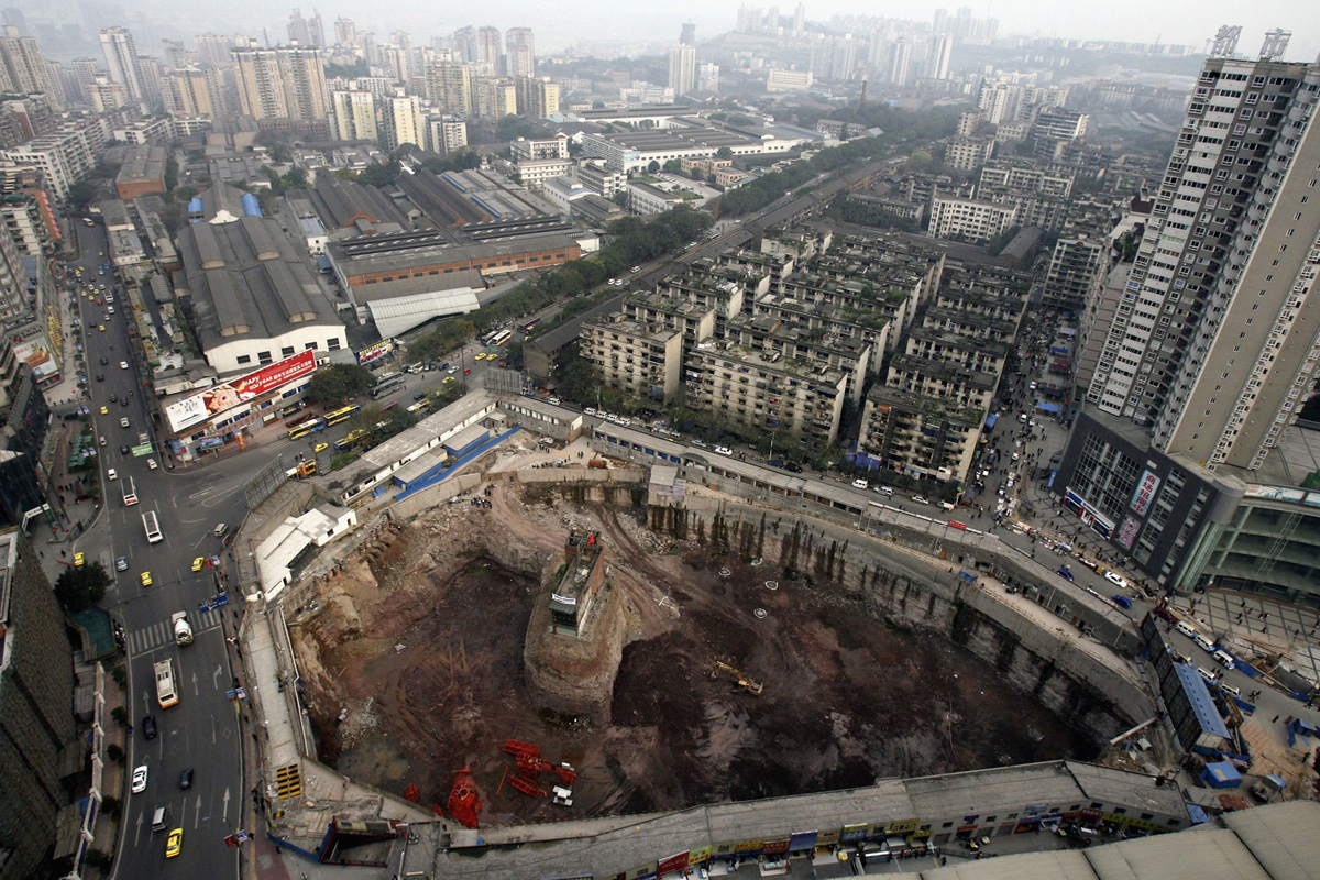 وقد أصبحت تلك المشاهد الغريبة أكثر شيوعاً في الصين منذ تمرير قانون في عام 2007 يجبر السلطات على إثبات أن الهدم في المصلحة العامة قبل أن تتمكن من الاستيلاء على الأراضي الخاصة.